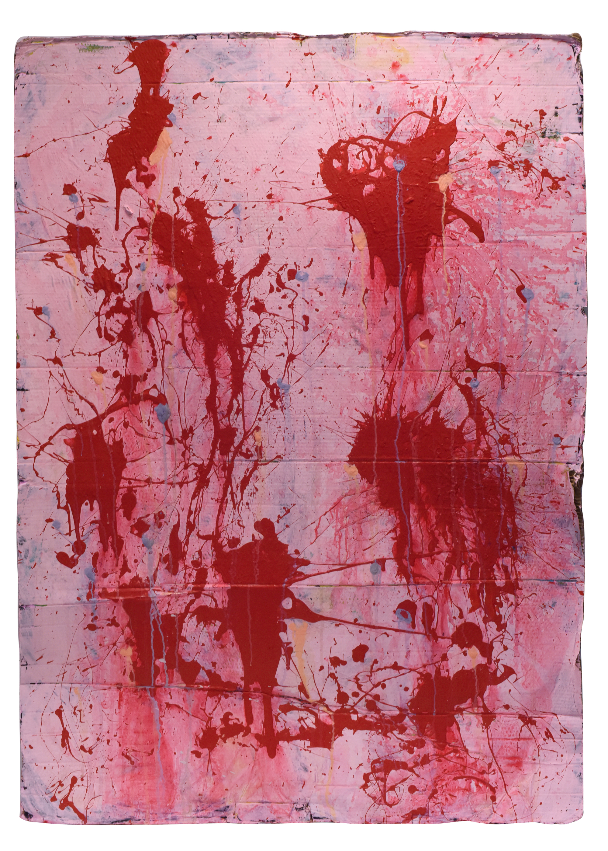 (EMULSION, SAND, PAINT DYE, WATER, CARDBOARD, HANDS/FINGERTIPS)